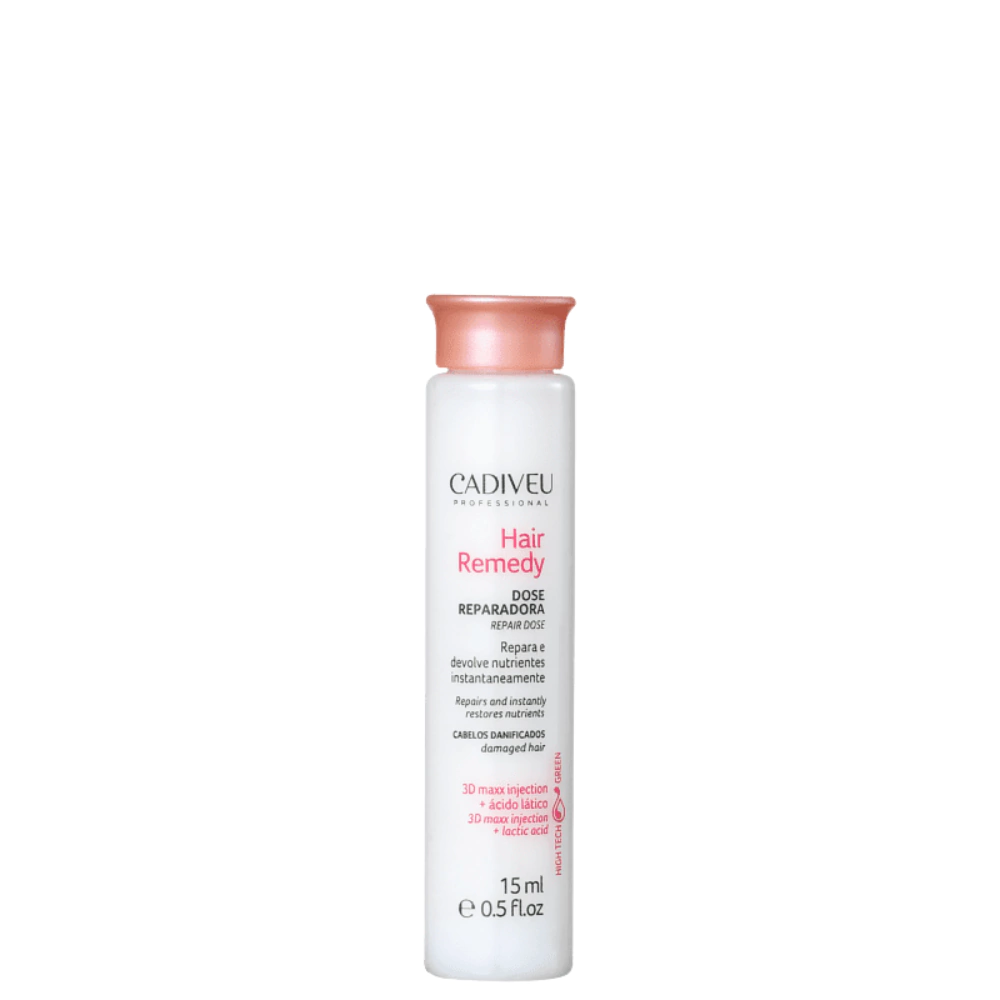 As Ampolas Cadiveu Hair Remedy Dose Reparadora contam com tecnologia especial para penetrar todos os níveis do fio, e assim promove a reparação desde a cutícula até o córtex. Além disso, seu uso protege o cabelo contra danos futuros e do processo de oxidação.