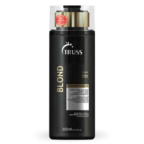 Você acaba de encontrar o condicionador ideal para cuidar de cabelos loiros, grisalhos e descoloridos como eles merecem. O Condicionador TRUSS BLOND cuida do seu tom com seu Blend de Pigmentos Violeta, que neutraliza os tons alaranjados causados pela oxidação do fio com exposição ao sol, uso de fontes de calor e demais agressões do dia a dia.